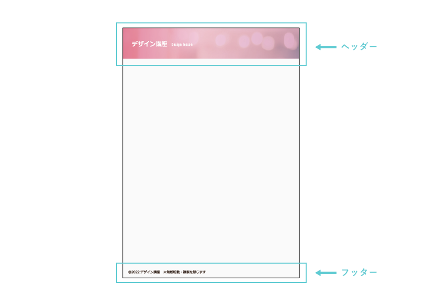資料に欠かせないヘッダーとフッターを作るための機能はIllustratorにはありませんが、アートボードを使う方法をお伝えします。
